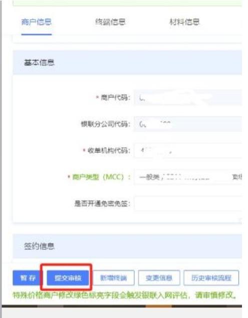 5、所有修改完后,需要在“商户信息”页,点击提交审核。