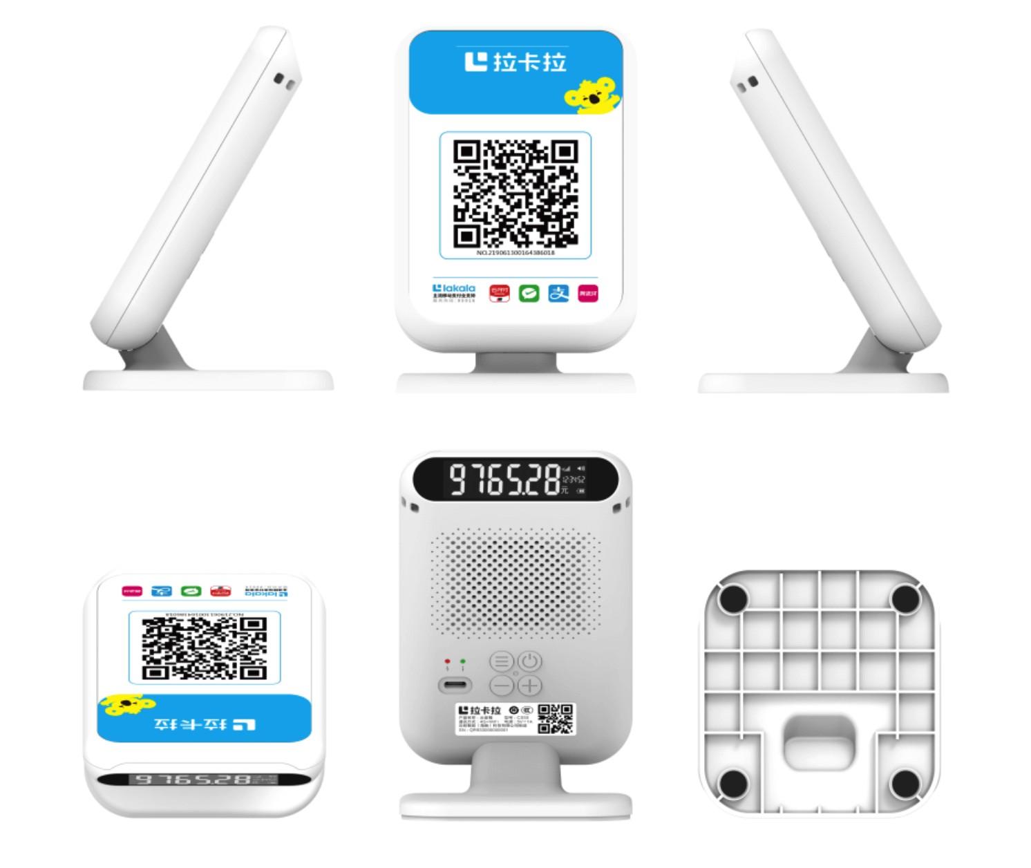 设备配置可拆卸底座,通过悬挂扩展可布放在室内外多种消费场景进行收款播报;高清语音播报